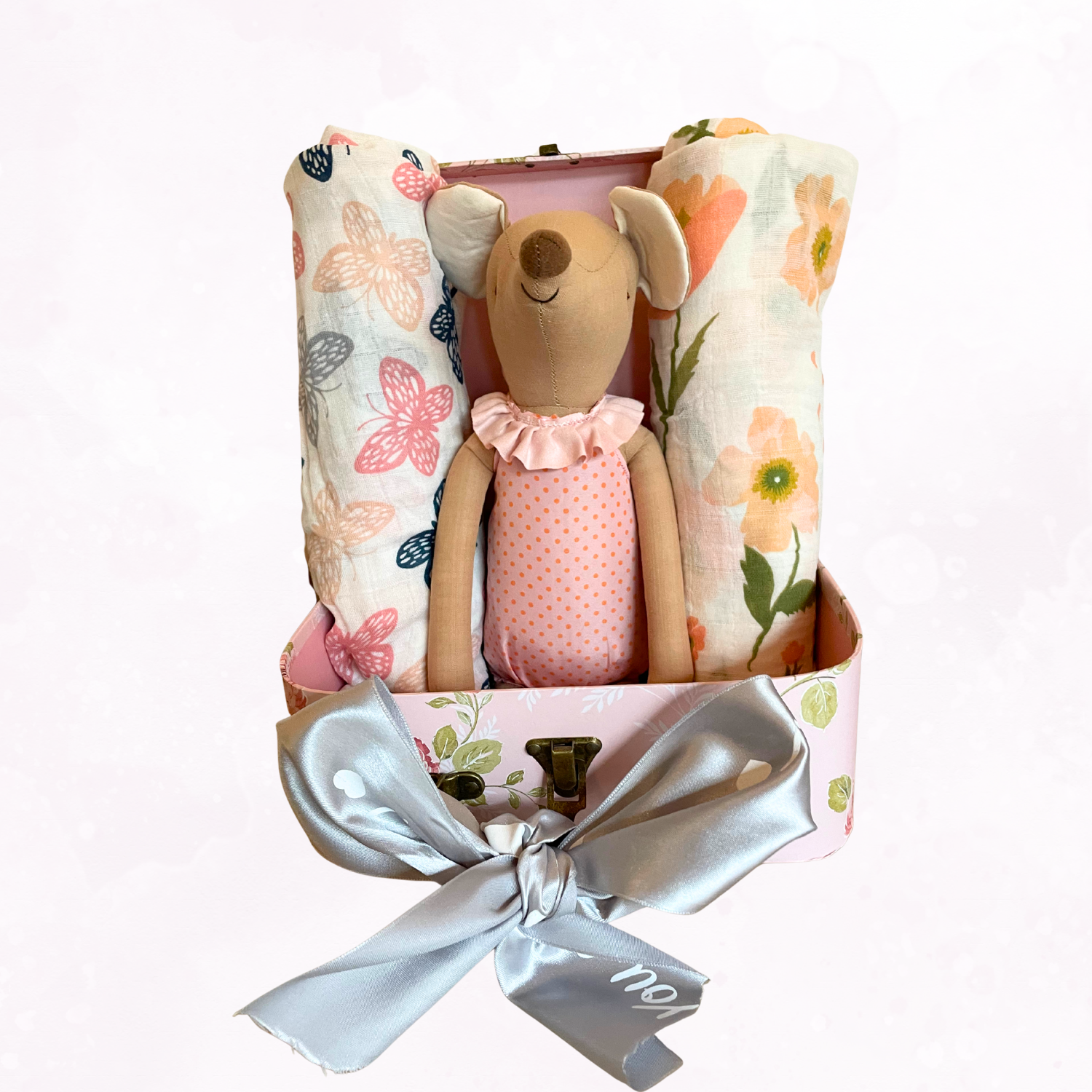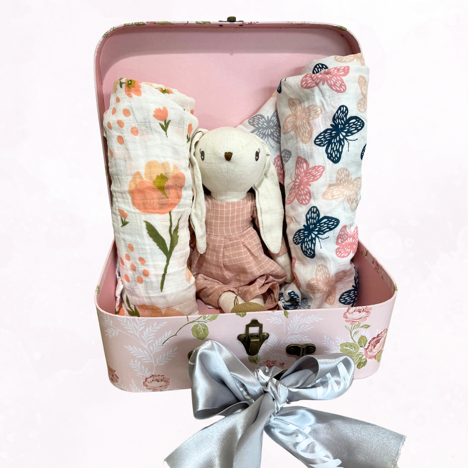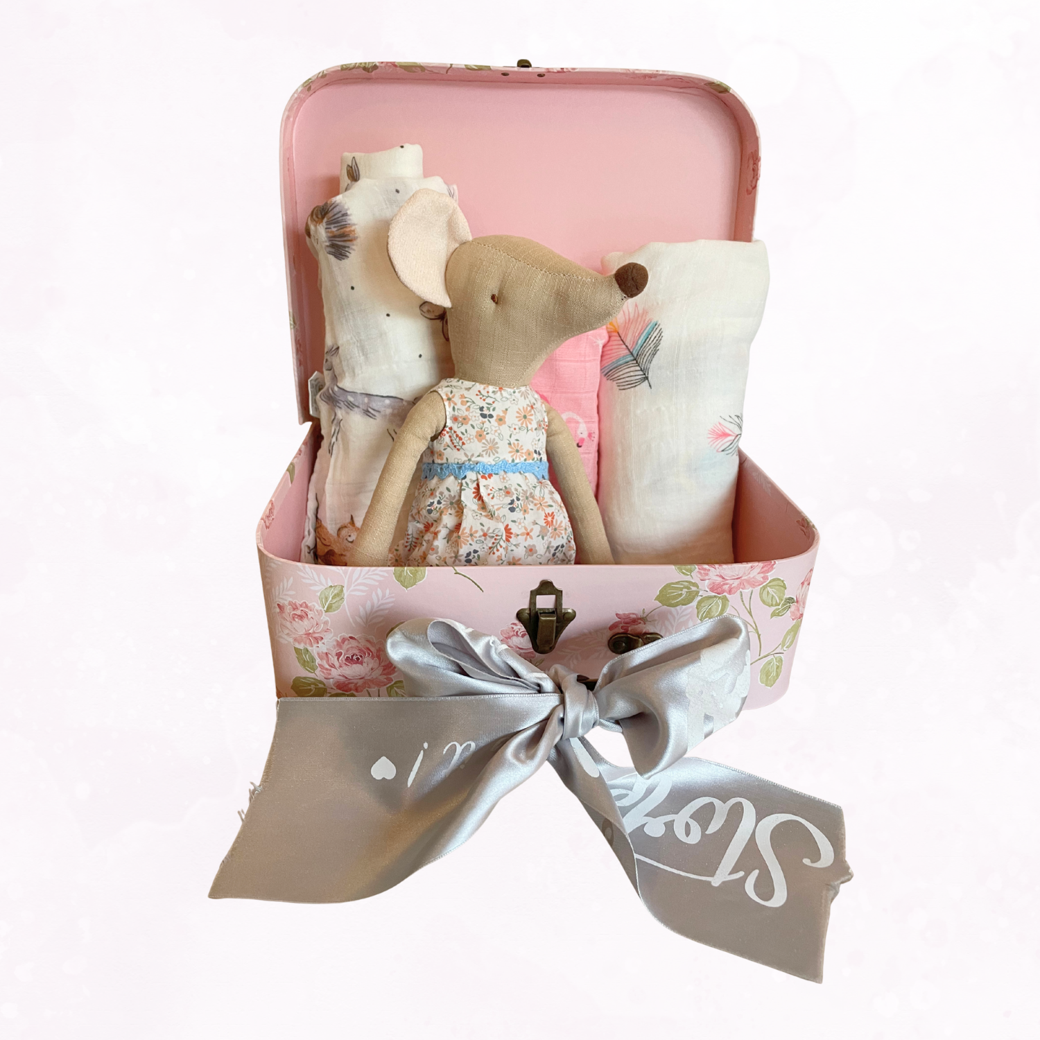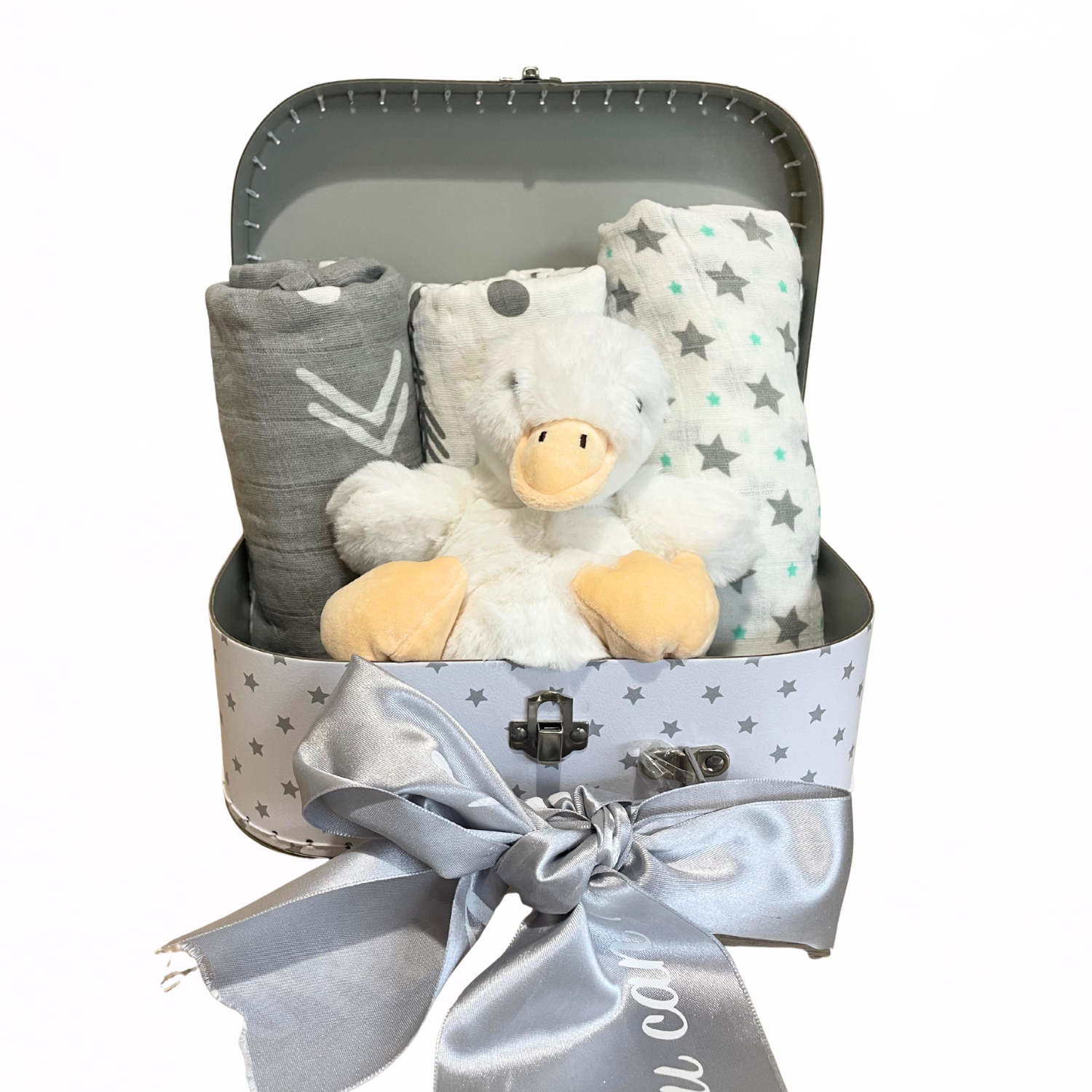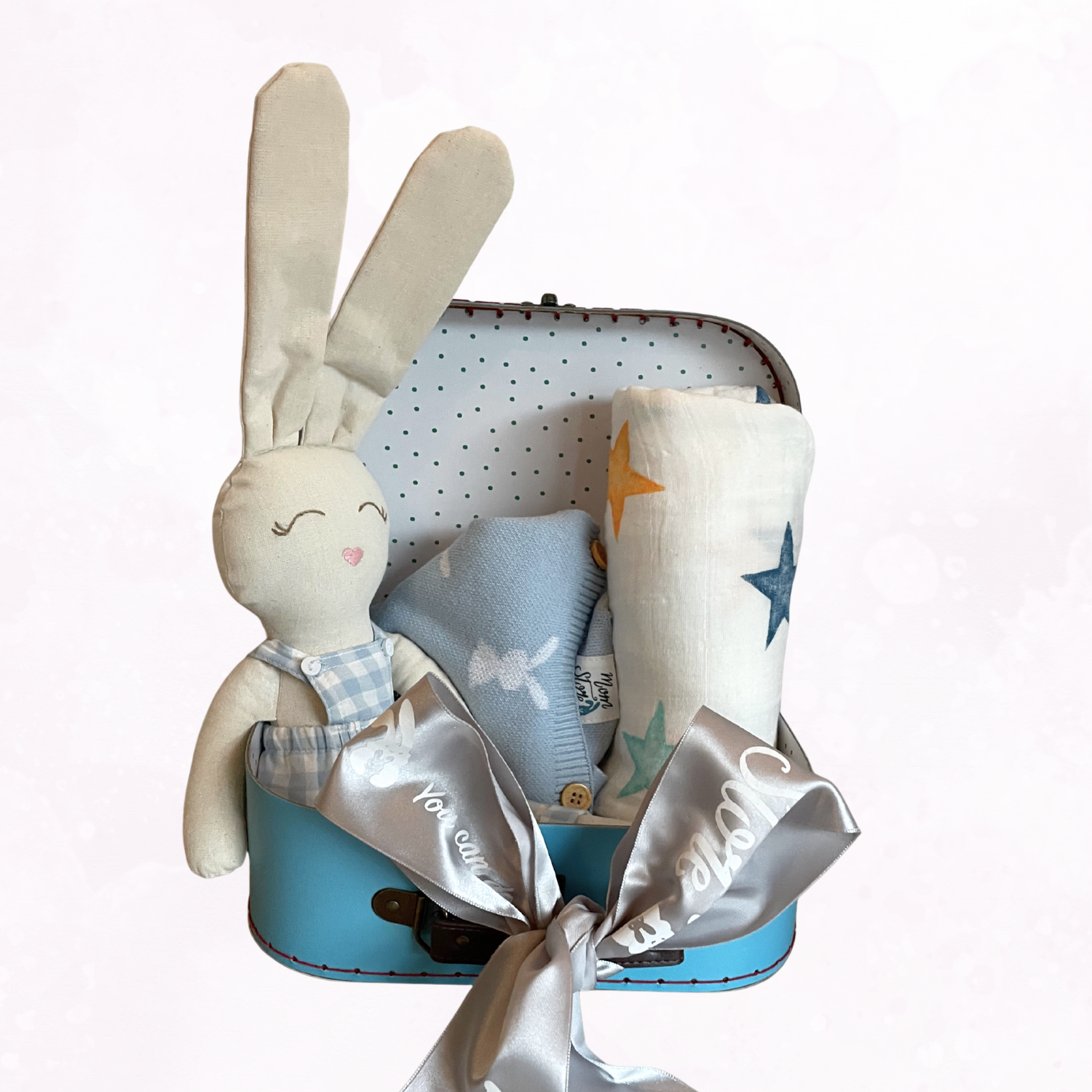 Nuestros maletines son el regalo más tierno que encontrarás!! Incluyen muselinas hipoalergénicas , ideales para recién nacido, gracias a sus fibras de algodón protegen su piel. Los peluches de apego se vuelven sus compañeros de aventuras! Aman dormir con ellos!!! Envió gratis a toda la República!!