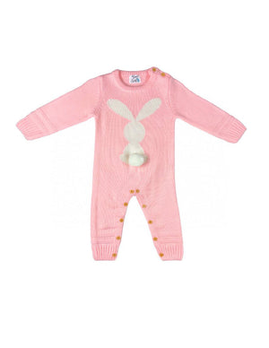 Mameluco de punto de algodón con manga larga, tiene un conejito con un pompon adorable.