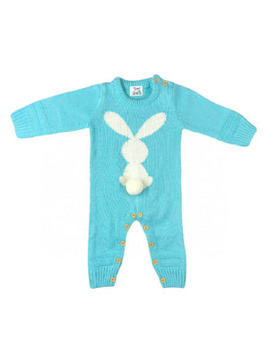 Mameluco de punto de algodón con manga larga, tiene un conejito con un pompon adorable.