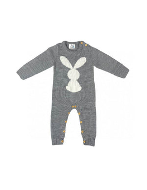 Mameluco de punto de algodón con manga larga, tiene un conejito con un pompon adorable.