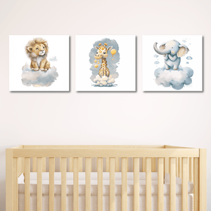 Nuestro set incluye 3 cuadros impresos en tela montados sobre bastidor de madera, listo para colgar. Medidas: 50x50cm. Puedes personalizar con nombre! Matenimiento: Puedes limpiar tus cuadros con un paño suave.Evita la en lo posible una exposición directa del sol. No incluye marco..