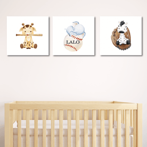 Nuestro set incluye 3 cuadros impresos en tela montados sobre bastidor de madera, listo para colgar. Medidas: 50x50cm. Puedes personalizar con nombre! Matenimiento: Puedes limpiar tus cuadros con un paño suave.Evita la en lo posible una exposición directa del sol. No incluye marco..