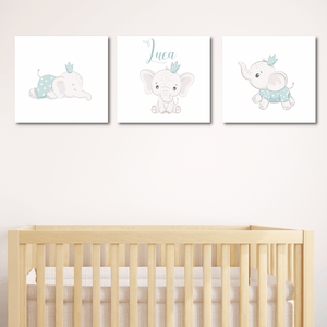 Nuestro set incluye 3 cuadros impresos en tela montados sobre bastidor de madera, listo para colgar. Medidas: 40x40cm. Puedes personalizar con nombre! Matenimiento: Puedes limpiar tus cuadros con un paño suave.Evita la en lo posible una exposición directa del sol. No incluye marco..