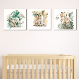 Nuestro set incluye 3 cuadros impresos en tela montados sobre bastidor de madera, listo para colgar. Medidas: 50x50cm. Puedes personalizar con nombre! Matenimiento: Puedes limpiar tus cuadros con un paño suave.Evita la en lo posible una exposición directa del sol. No incluye marco..